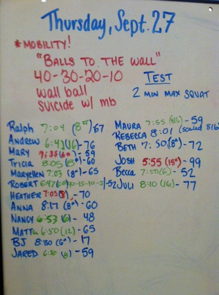 September 27, 2012 WOD: “Balls to the Wall” WOD – 9/27/12, “Balls to the Wall” Comments Post Info Author Info Leave a Reply Cancel replyYour email address will not be published.CommentName * Email * Website Save my name, email, and website in this browser for the next time I comment. Δ Matt September 27, 2012 CrossFit, WOD crossfit, fitblr, fitness, health, weight loss Previous post “Think of the consequences if you do nothing.” Next post Statistics Matt Administrator Posts by Matt YouTube Launch! August 13, 2016 What Do You Need To Be Successful? March 31, 2016 Year in Music January 2, 2016 Kyle Cease on Mindfulness November 30, 2015 145# Bench // 75# CSBR // Metcon: 16:45 November 25, 2015 Comments by Matt Previous post « Next post »